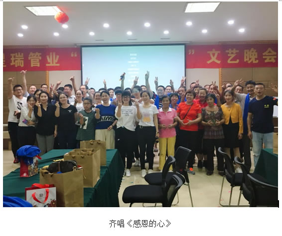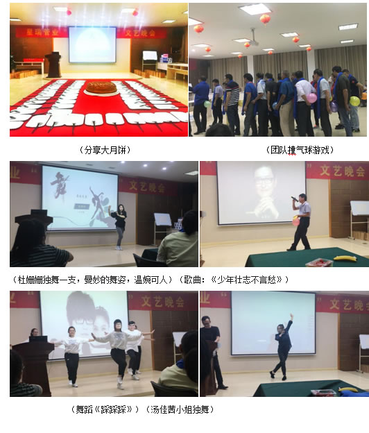 为增强企业团队凝聚力和员工归属感,让员工家属了解公司文化,增进对公司的亲切感,提高对员工工作支持度,激发员工的感恩心与荣誉心,为家人为团队更努力,更有价值的投入工作。江苏星瑞管业有限公司2018年9月22日晚17:00-21:00精心举办了“庆中秋迎国庆”系列活动, 此次活动包括:团圆大聚餐、分享大月饼、感恩蓝稠带互动、团队集体游戏、员工才艺表演、抽奖活动等。所有员工玩的好开心同样很尽兴,不知不觉几个小时过去了,大家齐唱《感恩的心》结束了当天的文艺晚会,期待明年的再次相聚。