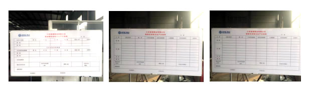 为加强生产车间管理,江苏星瑞管业有限公司三个车间分别安装了三块看板,分别是氧熔棒车间每日生产报表,焊管车间每日生产报表,吹氧棒车间每日生产报表(如图),生产车间实施看板管理后,可以传递现场生产信息,让车间每位员工掌握自己的作业任务,避免了信息传递中的遗漏,并且能树立良好的企业形象,看板能让客户迅速而全面地了解企业,并留下深刻的印象,从而从而让客户或其他人员由衷地赞叹企业的管理水平。