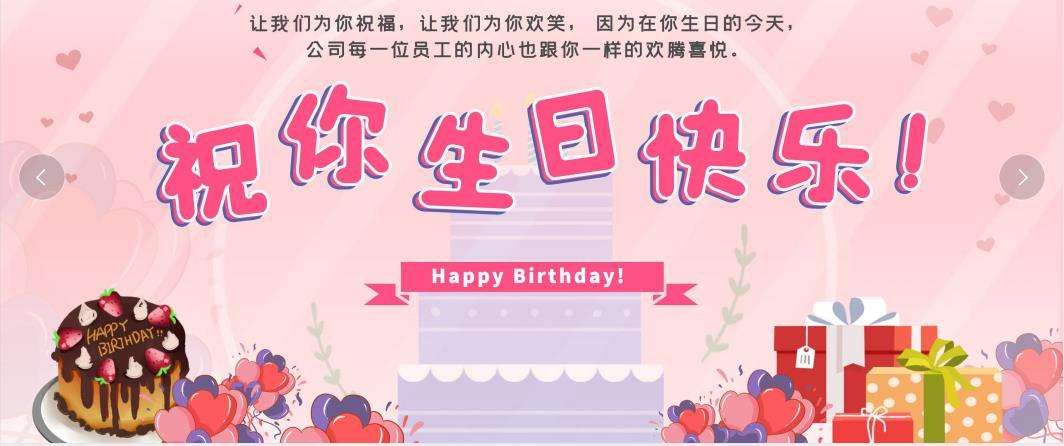 公司的兴旺有你们的功劳,兴旺的公司里有你们的幸福。一年来,因为你们的辛勤工作,公司得以正常运转;因为你们的无私奉献,公司业绩才会再创新高;在这个特殊的日子里,公司所有员工真诚的为你们祝福:祝你们生日快乐!天天开心!愿你们与公司携手走过每个春夏秋冬,收获人生最丰硕的果实。