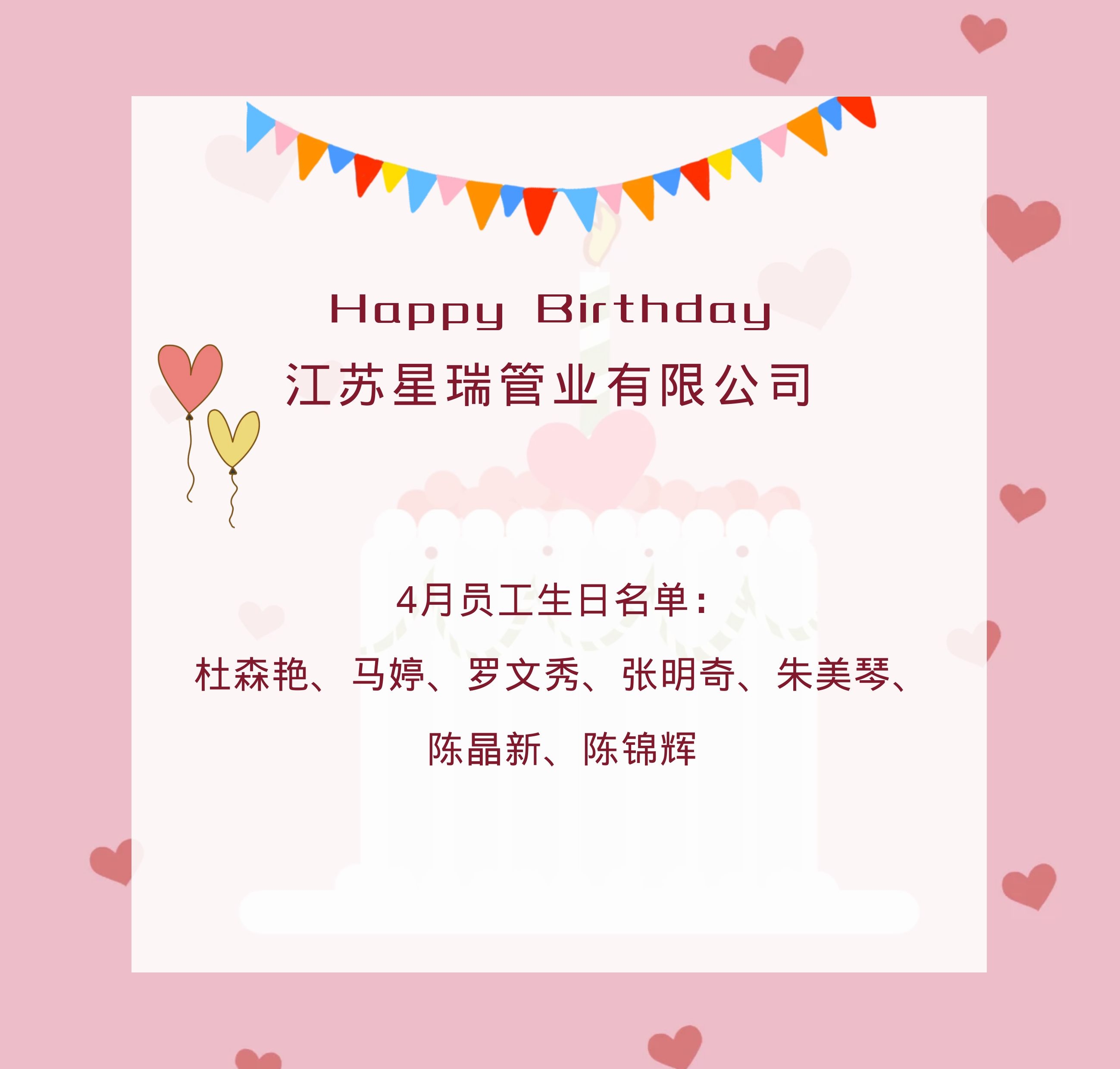 过了烟花三月,春光一泻千里,四月的脚步就迫不及待地来了,在这美好的季节里,桃花夭夭,渌水盈盈,同时也迎来了星瑞伙伴们的生日。